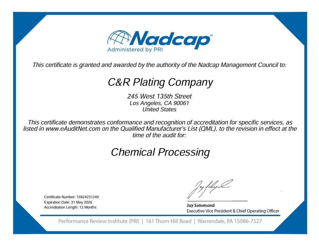 Founded in 2011, C & R Plating has provided plating and coating services to Southern California and domestic customers. We specialize in various decorative plating finishes for kitchen and bath products proudly made in the USA. See services for more details and don’t hesitate to get a Free quote from one of our friendly staff.